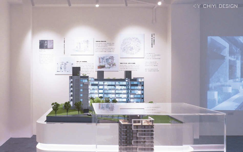 空間設計透過品牌窗鄰掛軸、地貼引導等軟性展示手法,搭配實木吊掛陳列呼應年輪概念,梳理觀展動線與閱讀節奏。展間呈現不同建案的風華與品牌意象,營造層次分明、靜謐而專注的展示氛圍,展現品牌對品質與生活細節的長期承諾。